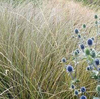 Marram grass is one such example, long penetrating/developing roots form in powdery dry sand and come to the surface at one spot each time. So valuable for our dunes that it grips the sand in this way, a gift you could say, because which other plant grips this shifting sand so tightly. Hats off therefore. With its noble, powerful appearance, this airy stunner could be useful, but unfortunately it is too demanding and is uncontrollable.
