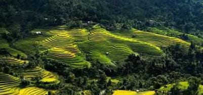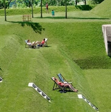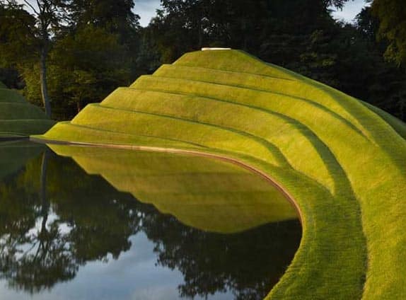 The terraced rice fields on hillsides in Indonesia, designed with function in mind and an example to landscape art, also offer an impressive picture of how earth can be used in terms of form and function.