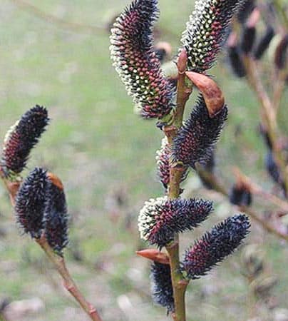 A very special harbinger of spring! The black catkin remains closed during the first weeks, after which it opens and you see the red-coloured stamen and most probably bees in the vicinity; they’re crazy about it. Its young branches change colour from mahogany brown to red, light grey and sometimes black. Its leaf is light green like the ordinary willow. When the light green leaf sprout, this is in subtle contrast to the catkins which dry out in the weeks afterwards. It can stand in a damp or drier spot, not very demanding therefore and it’s also not difficult for its bystanders, the neighbouring plants, to be in its vicinity. Last but not least, this macho has more than enough beauty to be used as a solitary plant, in summary a class act and an ordinary member of the willow family.